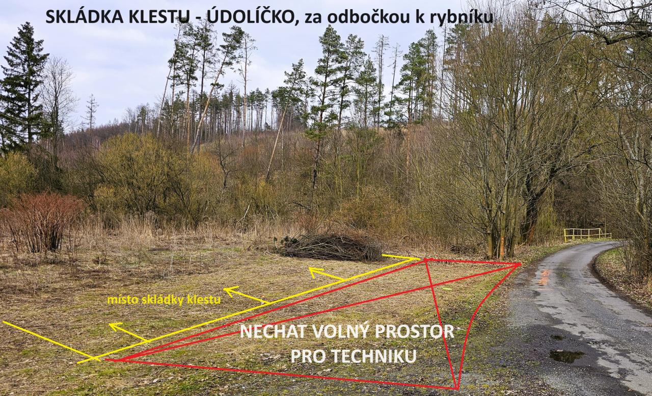 Vážení občané, upozorňujeme Vás, že v Údolíčku (viz mapa a snímek) je možno odkládat ořezy větví a klest z Vašich pozemků.